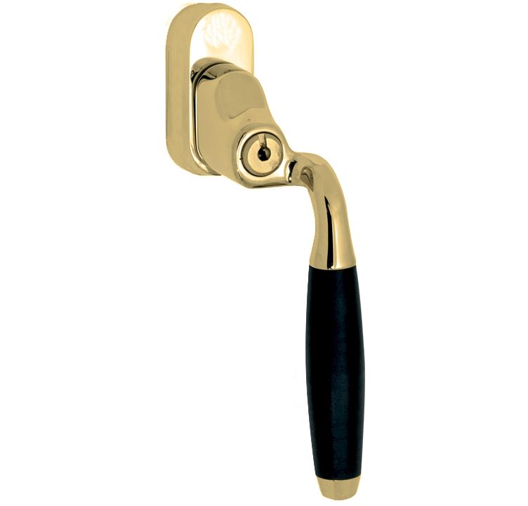 SKG2 Draaikiepgarnituur afsluitbaar Ton ebben/Smal rechts messing ongelakt