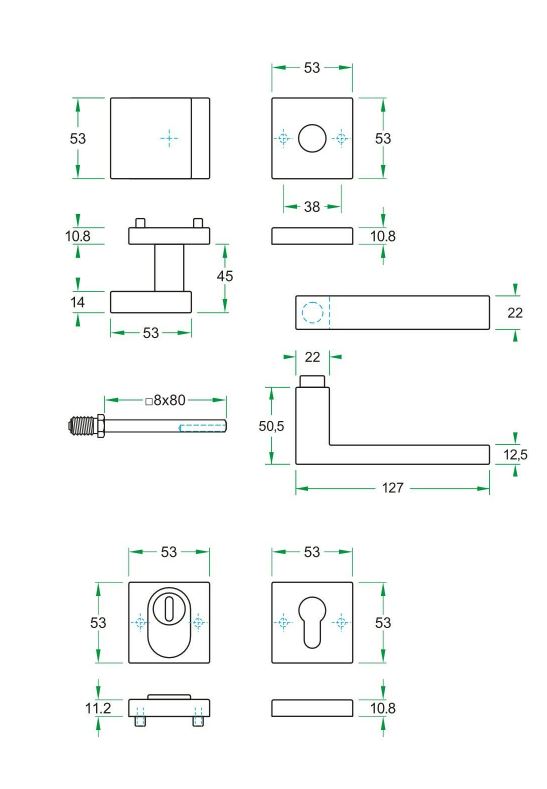 SKG3 knop/kruk Quattro op vierkant rozet rechts + kerntrekbeveiliging zwart