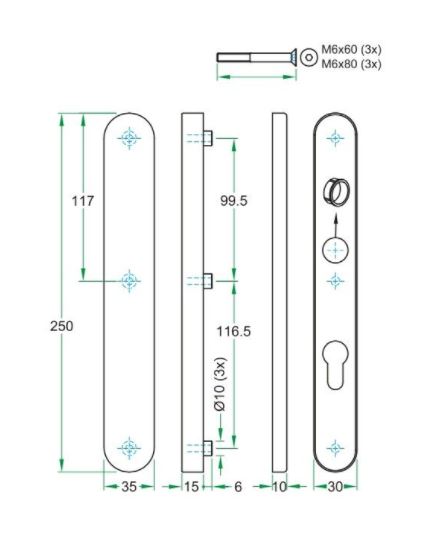 Binnenschild 30mm, buitenschild 35mm