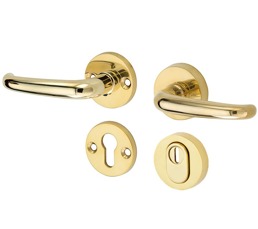SKG3 kruk/kruk op rozet Halfsabel links + kerntrekbeveiliging messing gelakt/messing PVD