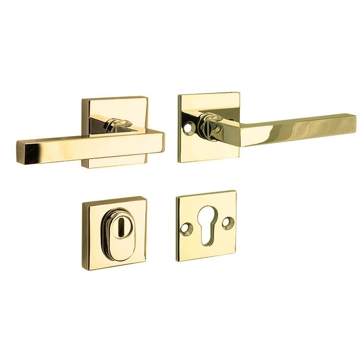 SKG3 kruk/kruk op rozet Kare rechts + kerntrekbeveiliging messing gelakt/messing PVD