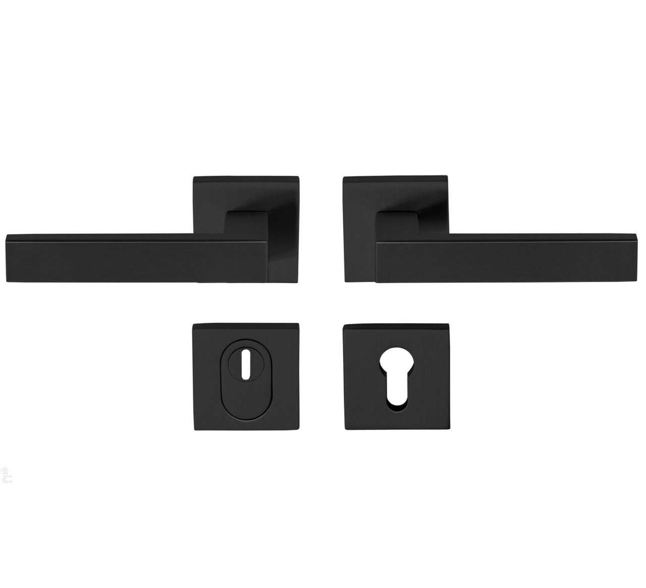 Quattro rvs/zwart veiligheidsbeslag kruk/kruk met vierkante veiligheidsrozetten