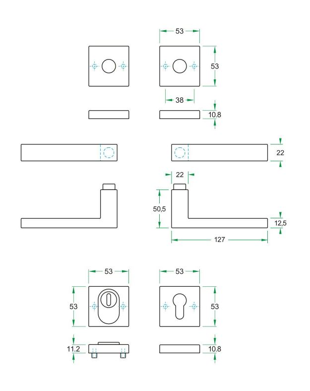 SKG3 kruk/kruk Quattro op vierkant rozet + kerntrekbeveiliging zwart