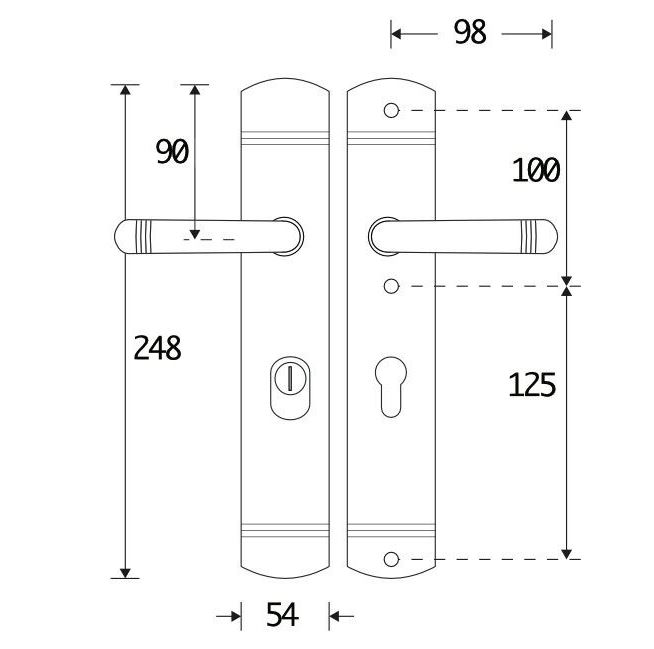 De h.o.h. afstand tussen profielcilindergat en deurklink is 72 mm.