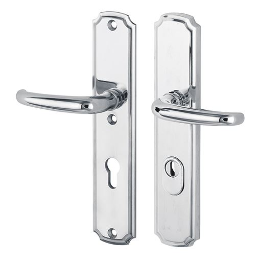 SKG3 PC92 kruk/kruk op schild Halfsabel/Art-Nouveau links + kerntrekbeveiliging glans chroom