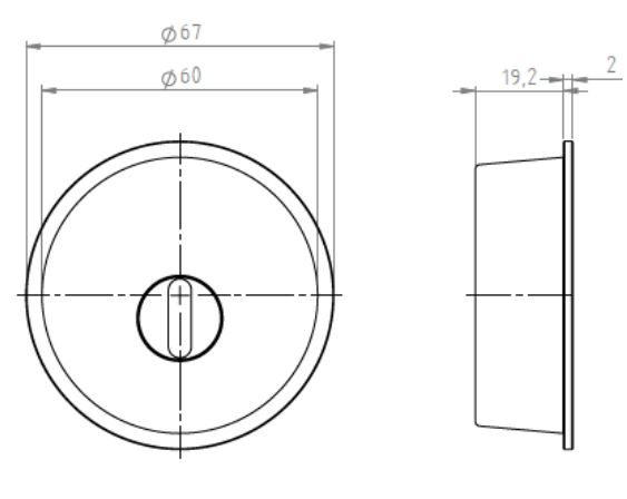 De bevestiging van het rozet geschiedt door middel van 4x M6x50mm (DD tot 42mm) en 4x M6x70mm (DD tot 62mm) Incl. montagemiddelen voor de oplegsloten met een vaste cilinder en de versies met een losse cilinder. De optionele smetplaat wordt tussen rozet en deur geklemd.