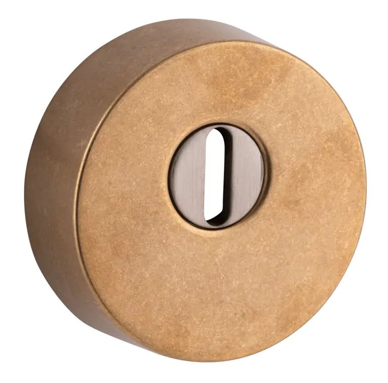 SKG3 veiligheidsrozet voor oplegsloten met rondcilinder en kerntrekbeveiliging messing antiek