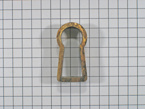 Sleutelentree messing antiek 16 x 30 mm. Foto is genomen op ruitjes van 5 x 5 mm.
