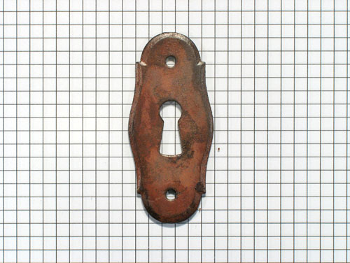Sleutelplaat ijzer geroest. Foto is genomen op ruitjes van 5 x 5 mm.