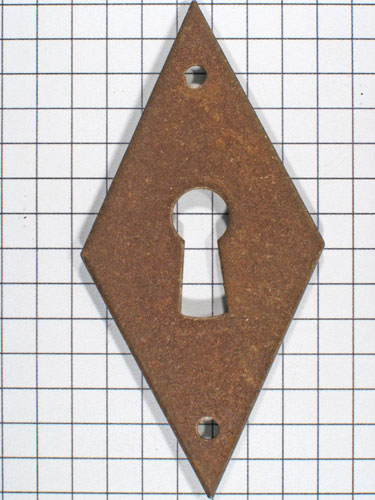 Sleutelplaat ijzer geroest. Foto is genomen op ruitjes van 5 x 5 mm.