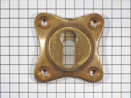 Sleutelplaat messing antiek vierkant. Foto is genomen op ruitjes van 5 x 5 mm.