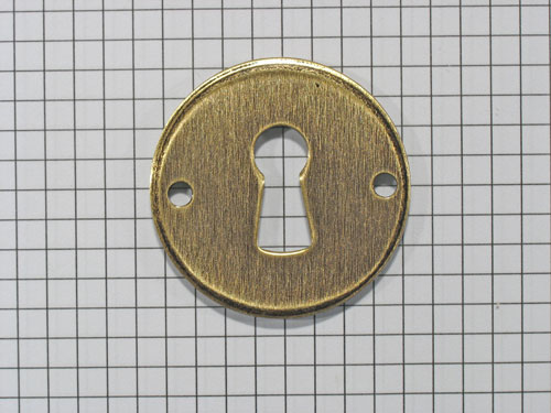 Sleutelplaat rond messing antiek. Foto is genomen op ruitjes van 5 x 5 mm.