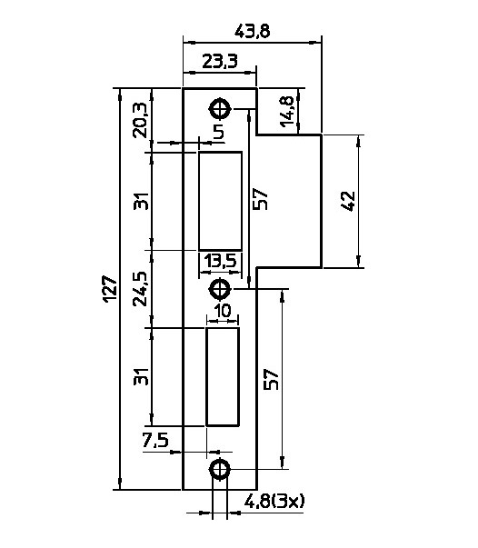 Deze sluitplaat is zowel links als rechts bruikbaar en is staal verzinkt.