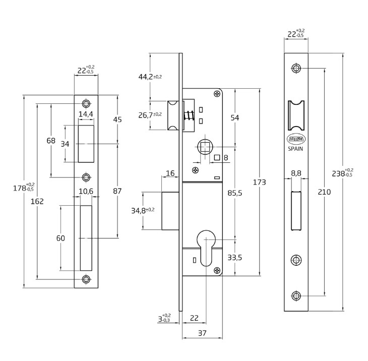 Smaldeurslot inclusief sluitplaat PC85 doornmaat 25 mm