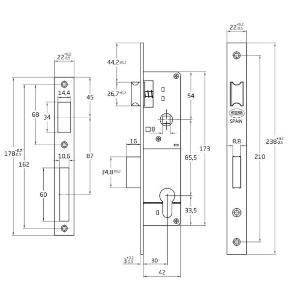 Smaldeurslot inclusief sluitplaat PC85 doornmaat 30 mm