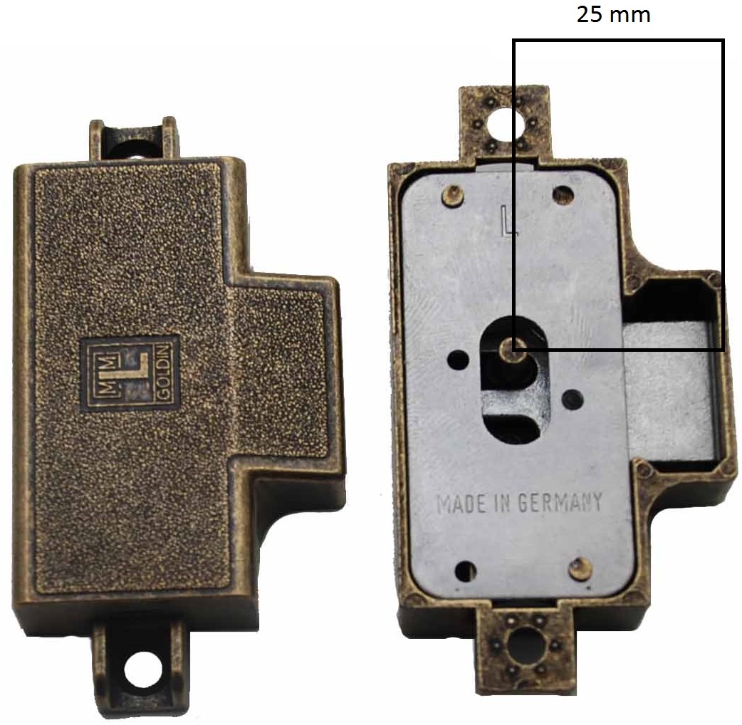 MLM Goldin Spanjoletslot 25 mm links brons heeft een doornmaat van 25 mm.