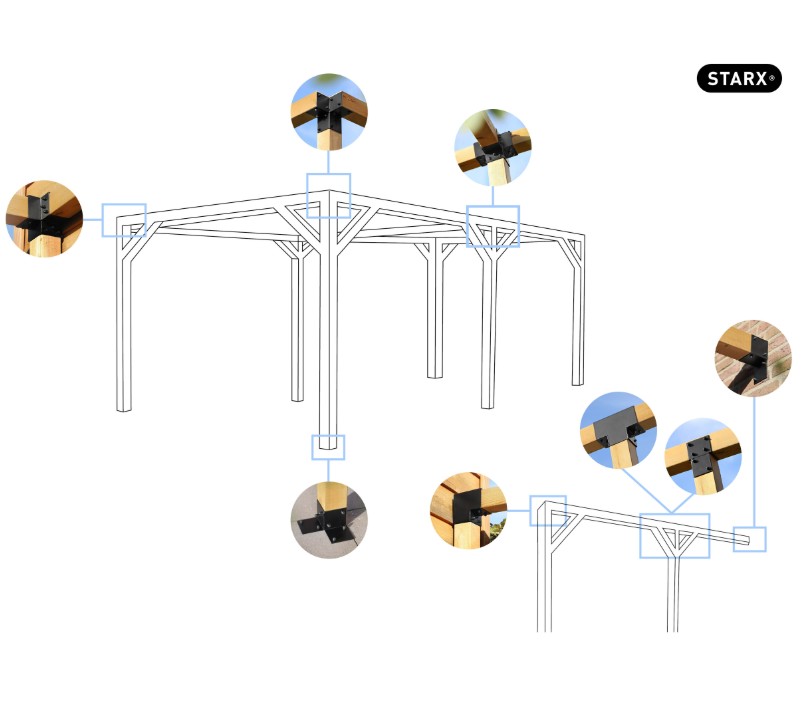 Starx paalverbinder type-X 70×70 mm zwart