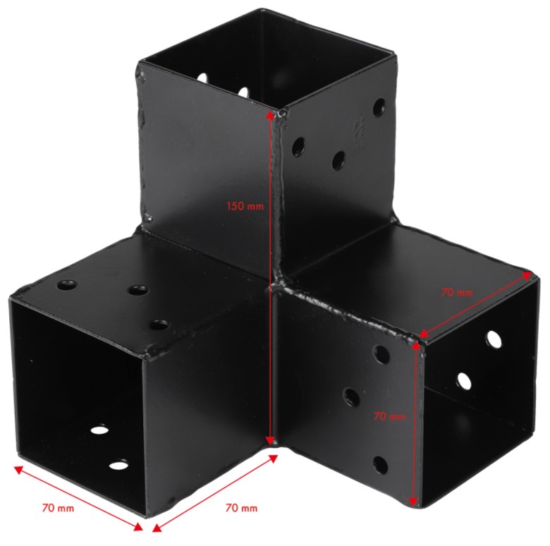 Deze hoogwaardige paalverbinder is speciaal ontworpen voor paalafmetingen van 7 x 7 cm en biedt een solide oplossing voor het verbinden van palen in diverse hoeken. Met zijn duurzame constructie en stijlvolle zwarte afwerking voegt deze paalverbinder niet alleen functionaliteit toe, maar ook een vleugje elegantie aan jouw constructieprojecten. Of je nu een pergola, een hekwerk of een tuinconstructie wilt bouwen, de Starx paalverbinder in het 3-weg hoekmodel zorgt voor sterke en stabiele verbindingen. Het hoekmodel maakt het mogelijk om palen in verschillende hoeken met elkaar te verbinden, waardoor je jouw constructie volledig kunt aanpassen aan jouw wensen en specificaties. De Starx paalverbinder is vervaardigd van hoogwaardige materialen en is ontworpen voor langdurige prestaties en duurzaamheid. Ongeacht de weersomstandigheden of het dagelijkse gebruik, deze paalverbinder biedt een betrouwbare ondersteuning voor jouw constructie, zelfs onder zware belasting.