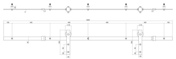 – Twee gelagerde stalen rolhangers