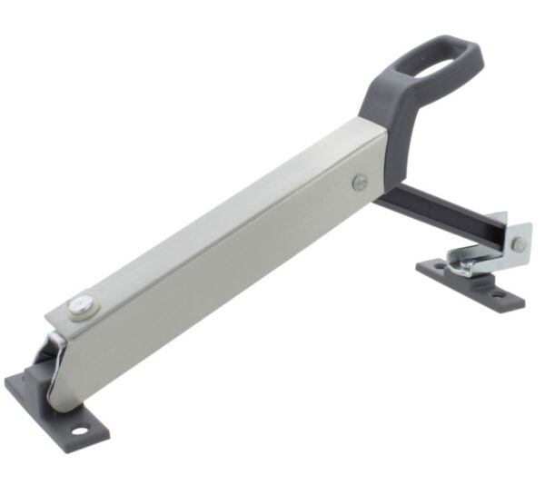 Voor naar buitendraaiende bovenlichten, klep- en uitzetramen. Maximale opening 16 cm. Raamuitzetter en -sluiter ineen. Wegdraaibaar.