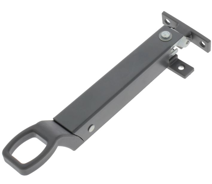 Voor naar buitendraaiende bovenlichten, klep- en uitzetramen. Maximale opening 16 cm. Raamuitzetter en -sluiter ineen. Wegdraaibaar.