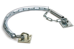 Deze stormketting met kettinghoes is staal verzinkt en geschikt voor deuren van 30 tot 40 kg.
