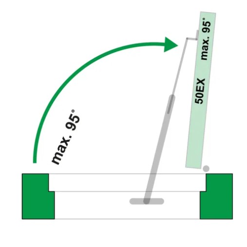 De tele-uitzetter 50 EX heeft traploze standen voor ventilatie.