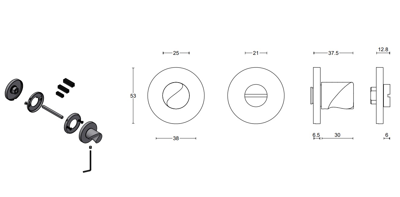 Toiletgarnituur inclusief 5/6/7/8 mm toiletstift mat roestvast staal.
