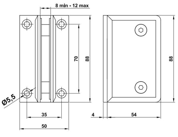 Vaste wandbeugel voor glazen wanden Mod. D nikkel