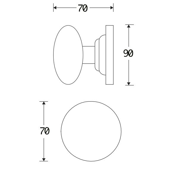 Voordeurknop Paddenstoel 70mm messing ongelakt