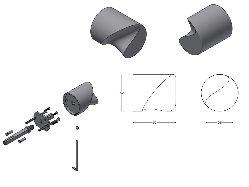 Deze massieve voordeurknop vast op rozet is van Formani uit de serie ELEEZ, van de designer Zaha Hadid.