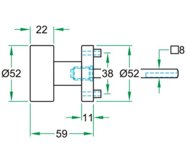 Bij deze vaste voordeurknop worden patentboutjes en een stift M12/Ø8x80mm geleverd waarmee u aan de binnenzijde van de deur een deurklink kunt monteren op dezelfde hoogte. (Ook kan deze knop eenzijdig worden opgeschroefd door de meegeleverde schroefjes)