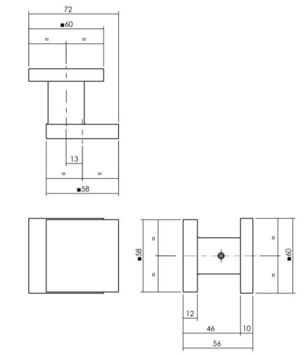 Deze vierkante voordeurknop bestaat uit aluminium en is hierdoor licht van gewicht en sterk tegelijk. De knop is F1 gematteerd, waardoor het een zilverkleurige uitstraling krijgt. De knop heeft een afmeting van 58 x 58 mm en de achterplaat is 60 x 60 mm. Montage is éénzijdig en eenvoudig met het bijgeleverde bevestigingsmateriaal.