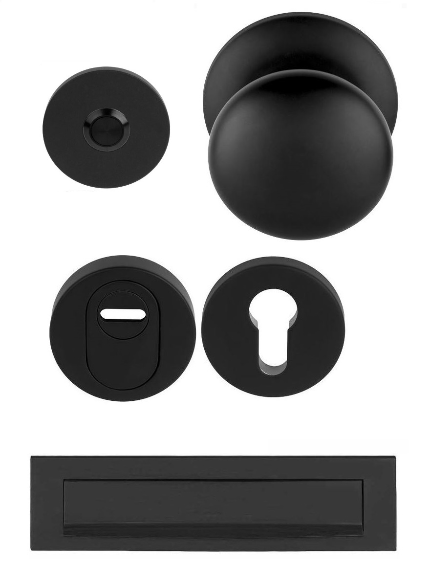 Voordeurknop Vast Rond 80 mm Met Rozet mat zwart