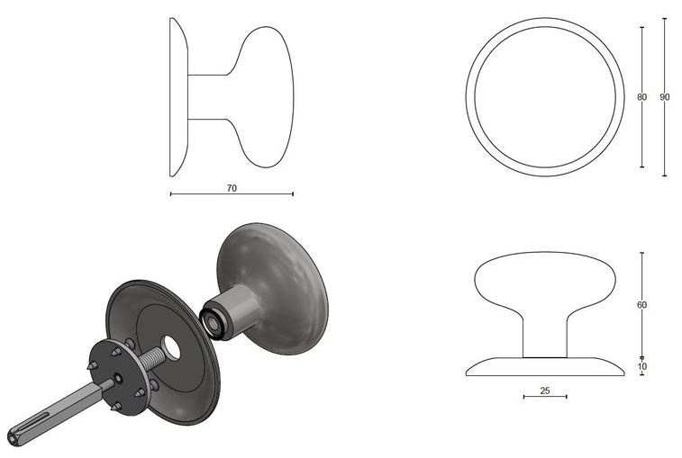 Bij deze vaste voordeurknop worden patentboutjes en een stift M10/8×80 mm geleverd waarmee u aan de binnenzijde van de deur een deurklink kunt monteren op dezelfde hoogte.