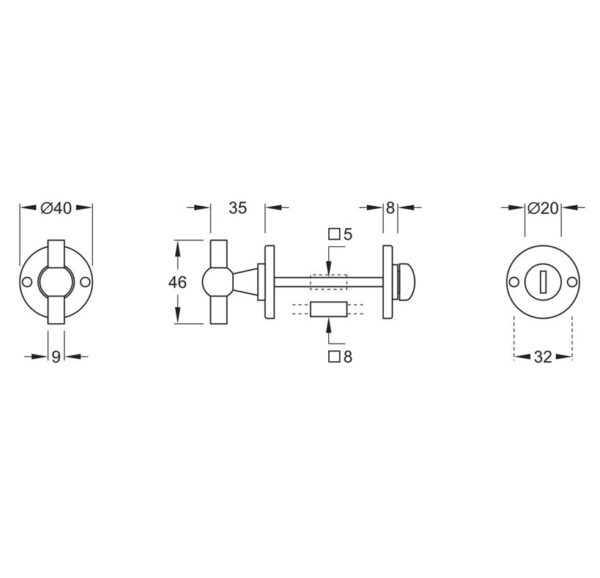 Stift maat van de wc-sluiting is zowel vierkant 5 als 8 mm!