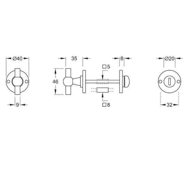 Stift maat van de wc-sluiting is zowel vierkant 5 als 8 mm!
