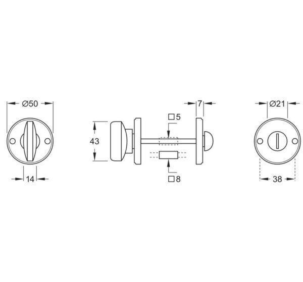 Stift maat van de wc-sluiting is zowel vierkant 5 als 8 mm!
