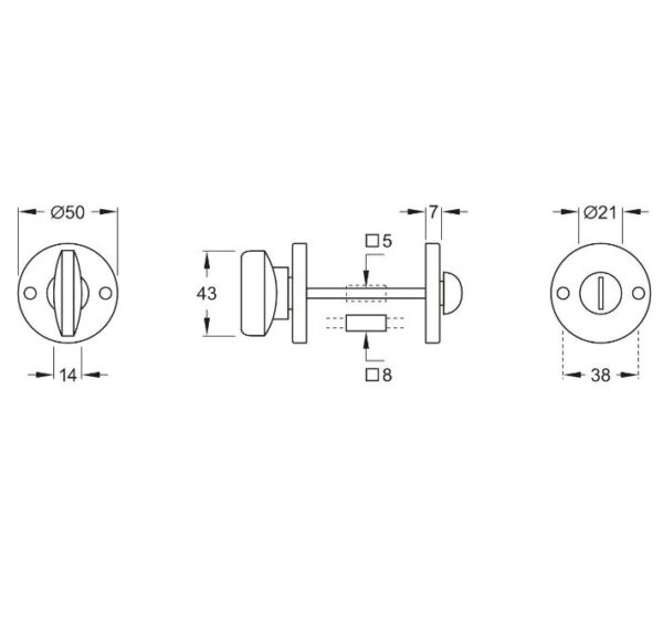 Stift maat van de wc-sluiting is zowel vierkant 5 als 8 mm!