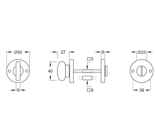 Stift maat van de wc-sluiting is zowel vierkant 5 als 8 mm!