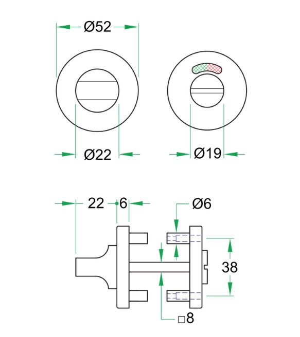 Toiletsluiting inclusief stift 8 mm voor een deurdikte van 47-60 mm, horende bij de deurklinken die bij de gerelateerde producten staan.