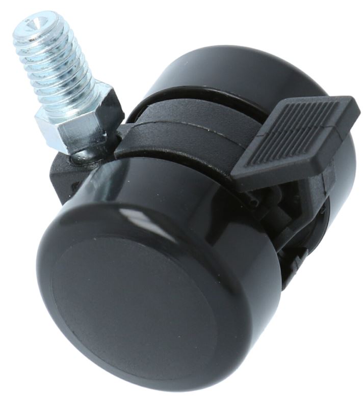 Zwenkwiel met rem voor stoelen met zacht zwart loopvlak M10