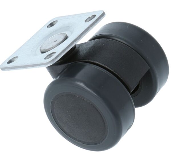 Zwenkwiel voor stoelen met zacht loopvlak met bevestigingsplaat